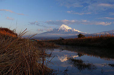 カヤのあちらこちらに、山影を落としてみました。引潮になると水がほとんど無くなってしまいます。