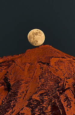 1カメで1000mmです。この時点で背中の太陽高度-0.1度。月齢12.6のおっ月さんです。