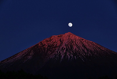 今回は2023年12月25日の夕暮れに西側からの「紅富士パール」です。
